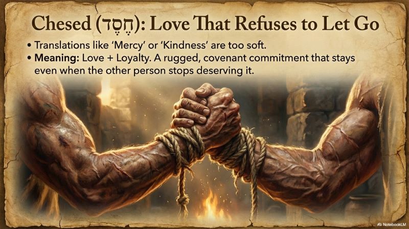 The word carries immense theological weight, describing the foundational nature of God’s unbreakable, loyal love for Israel. But English forces us to choose, and “mercy” suggests pity, “loving-kindness” sounds sentimental, “steadfast love” misses the loyalty dimension, and “grace” loses the covenant context.