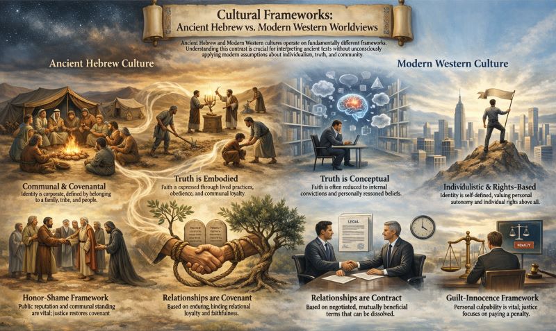 Perhaps the most foundational cultural gap lies in the difference between honour-shame cultures (like ancient Israel) and guilt-innocence cultures (like the modern West). Western readers approach the Bible through a guilt-innocence lens: we focus on rule-breaking, individual conscience, and personal responsibility. We ask, “Did I break a rule? Do I feel guilty?”