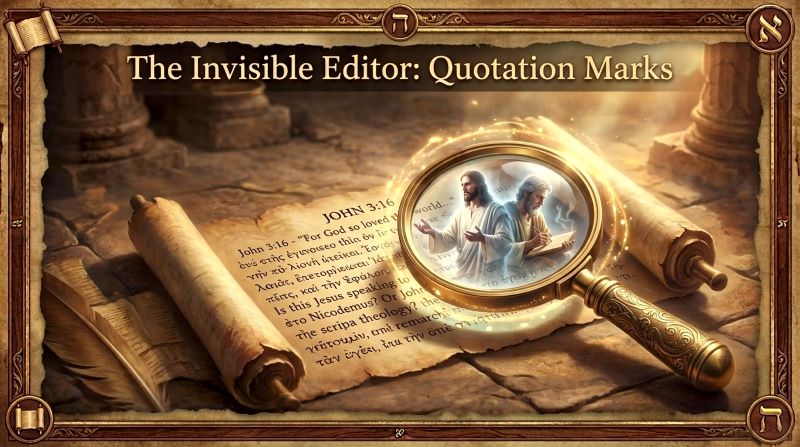 Quotation marks didn’t exist in ancient Greek manuscripts. This creates significant ambiguity about where quotations begin and end.