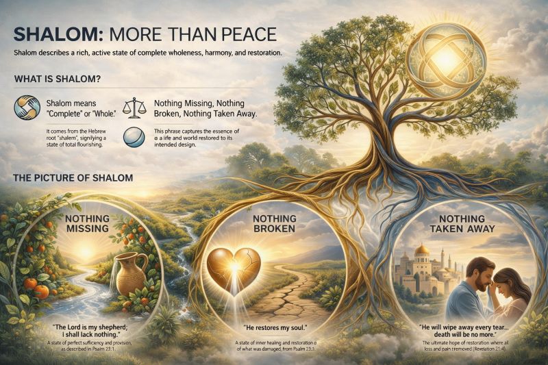 But when we recover the true biblical meaning; when we understand that shalom means comprehensive wholeness, active restoration, nothing missing, nothing broken, nothing taken away, everything changes.