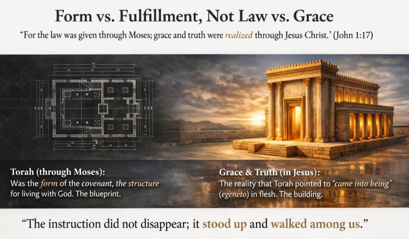 Grace; whether experienced as a completed marriage covenant or as a betrothal, isn’t an exemption from God’s ways. Grace is God dwelling with us so closely that His ways become written on our hearts. Torah isn’t an external burden imposed despite grace. Torah is the wisdom of how to walk when you’re in covenant with the Holy One, when His Spirit lives in your midst, when you bear His name.