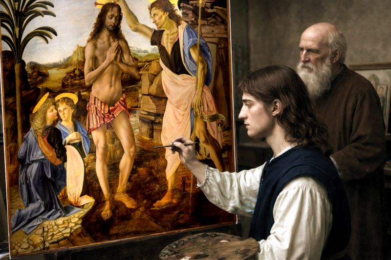 He watched Verrocchio paint. He listened to Verrocchio discuss technique with Botticelli, Perugino, and Ghirlandaio, masters who gathered in the workshop. He learned not just how to mix colours but how a master saw. He absorbed not just techniques but vision.